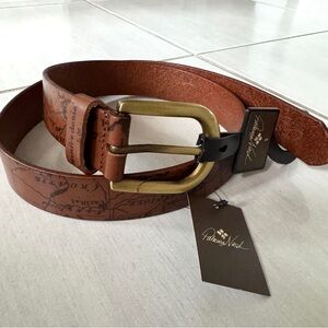 Patricia Nash Belt VIETRI Riot Rust Brown Map Print 100% Leather Women's NEW!