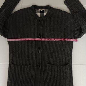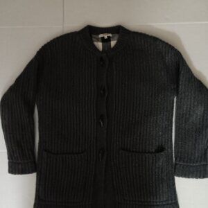 Size XS - Women's Madewell heavyweight cardigan sweater has toggle button front closure, functional pockets, and plaid print inner lining the material is 40% nylon, 30% merino wool, 25% polyester, and 5% alpaca. The lining 100% cotton in good preowned condition