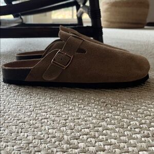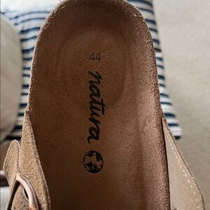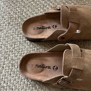 Brand new tan suede clogs from Natura Selection. They are an exact copy of the Birkenstock Boston clogs. The leather is beautiful. Brought them from Mallorca for my son but were a bit too small.