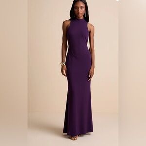 Lulus Damaris Dark Purple Mock Neck Backless Maxi Dress - Size L