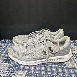The Under Armour Charged Bandit 3 Women's Size 9.5 sneakers in gray are designed for athletic use, providing comfort and support for active women. With a sleek and stylish design, these shoes are perfect for workouts or casual wear. The model features the signature Under Armour Charged Bandit 3 technology for added cushioning and impact protection, making them ideal for those who prioritize both style and performance in their footwear.