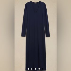 Never worn Chic deep blue maxi dress. Features long sleeves and a V-neckline. Ideal for versatile styling.
