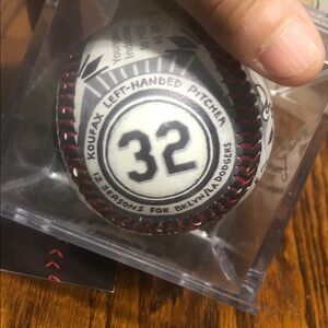 Celebrate the legacy of Sandy Koufax with this commemorative baseball. Featuring a classic black and white design, it's a must-have for any baseball enthusiast.