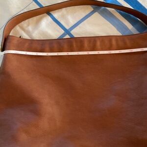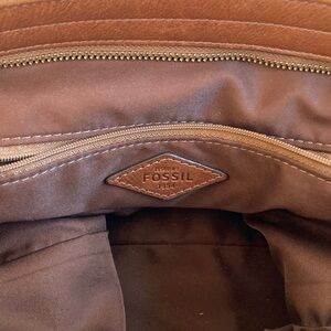Elegant Fossil shoulder bag. Rich brown leather. Perfect for everyday use. Minor scratches see pics. Love it but prefer silver details on a purse.