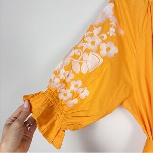 Julia Amory Orange Embroidered Cotton Short Sleeve Coatue Belted Dress