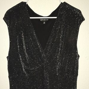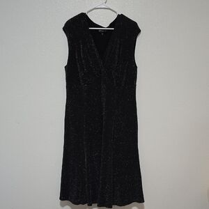 Jones New York Black Sheath Midi Dress V-Neck Sleeveless