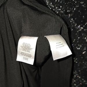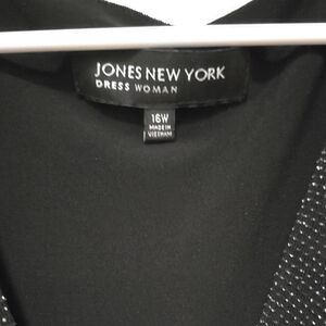 This sophisticated black sheath dress by Jones New York features a chic V-neckline and a sleeveless design, perfect for a cocktail night out. The midi length and sleek silhouette offer a timeless elegance, making it a versatile addition to any wardrobe.