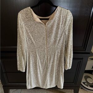 Dazzle in this stunning silver sequin dress. Perfect for evening events. Long sleeves add elegance. Worn for about 2 hours. Size 8.