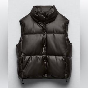 ZARA Padded Faux Leather Puffer Vest – Dark Chocolate Brown (S)
