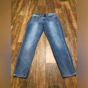 See all photos for best details! This has some holes in the very bottom hem on front and back. Sleeve had a couple stains- this needs dry cleaned and is sold as is. Measurements are in the photos