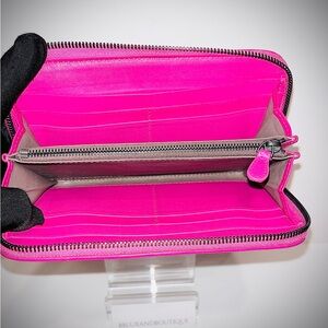 Meet your new Barbie-core dream in luxury form. This authentic Bottega Veneta wallet comes dipped in the most electrifying hot-pink leather, showcasing the house’s iconic hand-woven Intrecciato pattern. She’s bold, she’s bright, and she’s absolutely that girl.