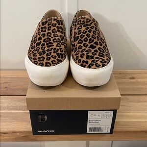 SeeVees Baja Platform Mulholland leopard cowhide sneakers, size 8. Comfortable platform sole. Ideal for everyday wear. Great pre owned condition.