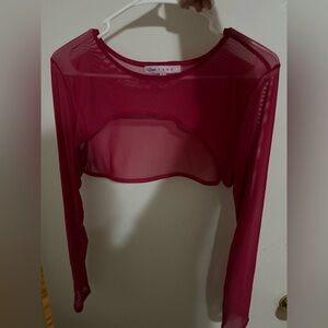 Stylish sheer crop top with long sleeves. Perfect for layering. Adds bold color to your look.