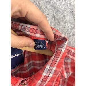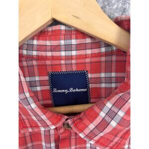 Tommy Bahama Red Plaid Short Sleeve Button Front Shirt XL Silk Blend