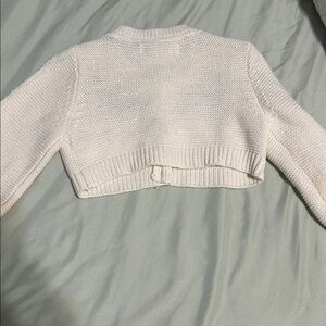 Chic cream cardigan with red floral accents. Cozy knit design. Perfect for layering.
