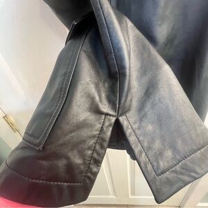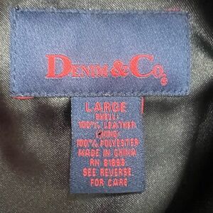 Stylish Men’s Black Leather Vest by Denim & Co. SIZE LARGE featuring a classic collar and front pockets.
