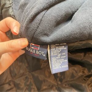 keep in mind this is vintage so there is some wear, some spots I tried to point out, loose strings and tear inside, tear near zipper and some random stains/ marks - so please keep this in mind it is still streetwear style and keeps you warm- both pockets behind them have a hole, the actual pocket is good but please look