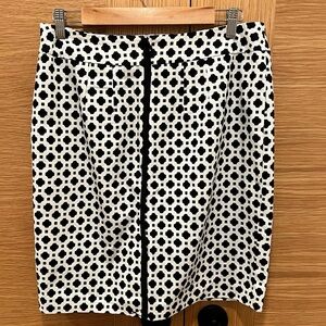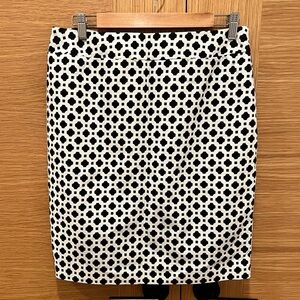 cynthia rowley skirt, geometric print skirt, black white pencil skirt, office skirt, cotton blend skirt, classic workwear, preppy style skirt, chic midi skirt, timeless pattern skirt, capsule wardrobe skirt