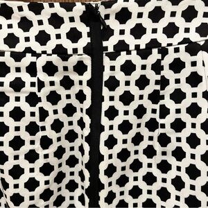 Cynthia Rowley black and white geometric print pencil skirt โ a flattering, tailored silhouette with a modern pattern that works for office, events, or weekends out. Made from breathable cotton with a hint of stretch for comfort and shape retention.