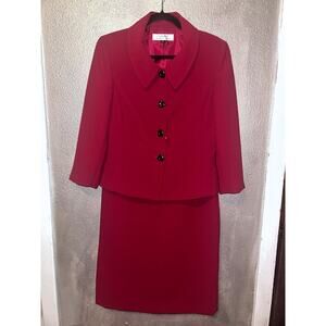 Tahari ASL Women’s Size 8 Red Blazer Skirt Suit Set Lined 3/4 Sleeve Career Work