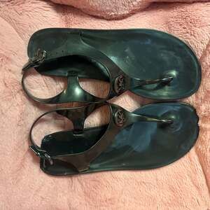 Michael Kors Black Jelly Thong Sandals with Gold MK Emblem