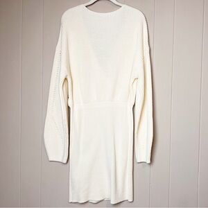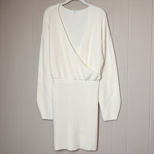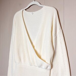 Tularosa Mia Surplice Mini Dress Large sweater knit ivory cream long sleeve cozy neutral solid fall winter V neck faux wrap boho off-white oatmeal bone