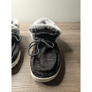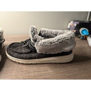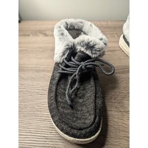 Hey Dude Wendy Fold Women's 6 Gray Faux Fur Lined Slip On Loafer Shoes