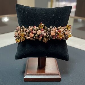 Rhodochrosite and glass beads woven bracelet. Great addition to your unique stone jewelry. Magnetic clasp