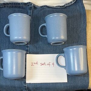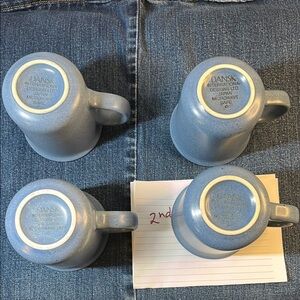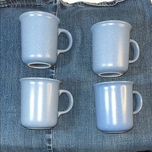 Denim blue ceramic mugs in Dansk MESA pattern.