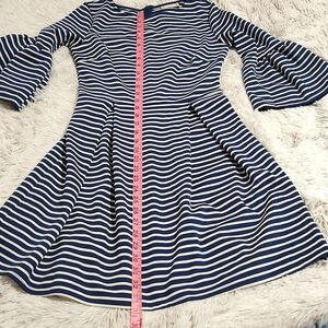 Altar'd State Cute Retro Sailor Dress Blue White Stripe Pleated Bell Sleeve Sz M