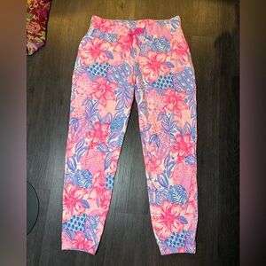 Soft pastel leggings with a playful pattern. Ideal for casual wear.