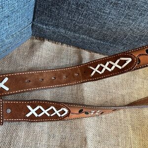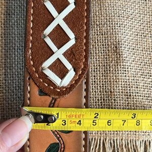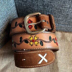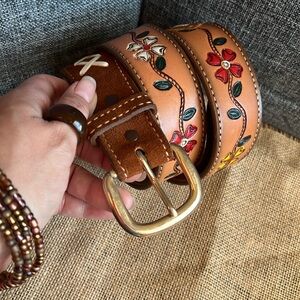Floral Brown Leather Belt (size 42) 🌺 🌼