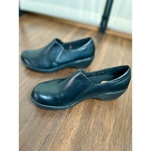 Clarks Women's Black Slip Resistant Leather Slip On Shoes
