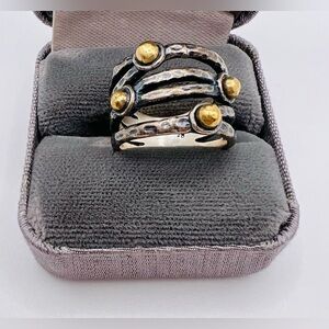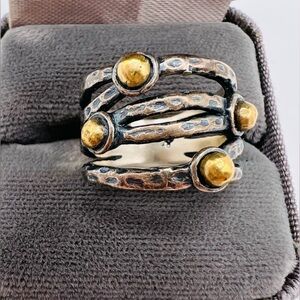 This is a beautiful Grace & Heart Sterling Silver Gold Brass Ball & Textured open Design Ring. It is a Size 6 and is in great condition with minimal signs of wear. If you have any questions or concerns please let me know. Thank you and happy shopping.