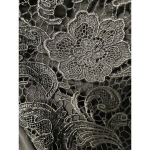 The Eva Mendes Black Pencil Dress in size 16 features a stunning floral lace design on the 3/4 sleeves, making it a perfect choice for weddings, parties, or business events. Made from polyester, this knee-length dress has a round neckline and a zip closure for added convenience. With its elegant style and lined interior, this dress is suitable for summer, fall, and spring seasons, adding a touch of sophistication to any outfit. The brand's reputation for quality and design ensures that this dress will be a standout piece in any woman's wardrobe.