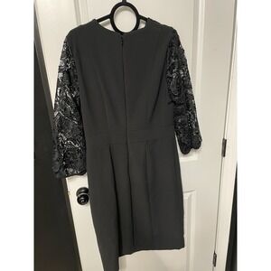 Eva Mendes Black Pencil Dress 3/4 Floral Lace Sleeve Lined Women's Size 14 NWOT