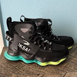 Brand new 9K Safety JB work sneakers with steel toe protection. These shoes are new without box, clean, and unused. Lightweight and breathable mesh upper with a chunky athletic-style sole in black with neon green accents.