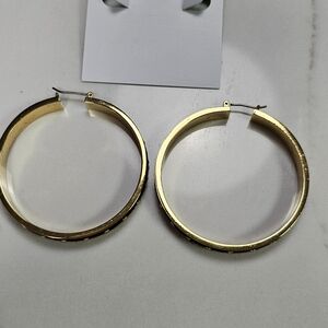 These stunning black and gold Kate Spade hoop earrings add a touch of elegance to any outfit. Perfect for both casual and formal occasions.