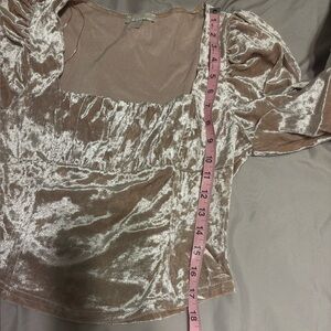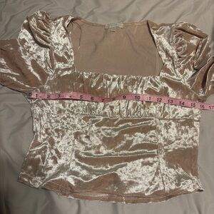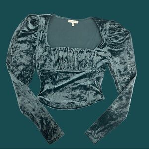 Crushed velvet top featuring square neckline, long puff sleeve, shirred front and body contouring. Perfect for a girls' night out date night or dinner. This statement piece that combines luxury and elegance. Crafted from soft crushed velvet, this top is the perfect way to add a touch of effortless sophistication to your wardrobe.