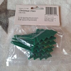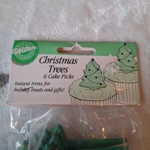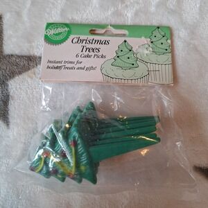 Wilton Christmas Cake Cupcake Picks Trees 6 Pieces Sealed Package Vintage