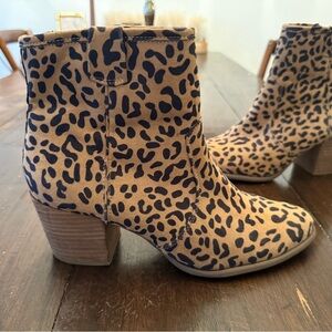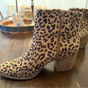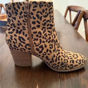 Step out in style with these chic leopard print ankle boots. Perfect for adding a bold touch to any outfit.
