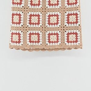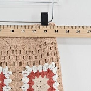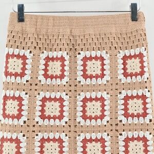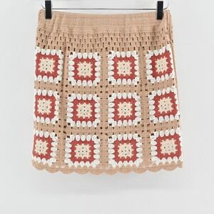 Lulus Womens Granny Squares Crochet Mini Skirt Size S Tan Boho Festival Lined