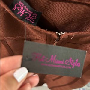 Hot Miami Styles Bandage Mini Dress Women's Brown Fitted Stretch Small Sexy