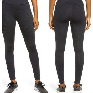 Free People Movement Infinity cut out crop leggings size x-small. Grey/black polyester/spandex blend material with stretch. Mid-rise with cut-out sides and scalloped hemline. Cropped length and logo on front. No holes or stains.