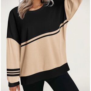 Zeagoo Women’s Striped Oversized Sweatshirt Black & Tan Size L NWT