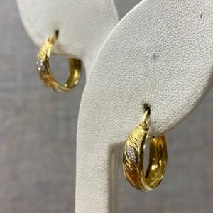 Classic 14k Yellow Gold Diamond Cut Textured Design Small Huggie Hoop Earrings