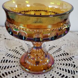 Pretty Vintage Gold Carnival Glass Pedestal Compote Candy Dish