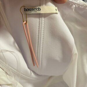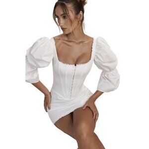 House of CB White Corset Mini Dress Puff Sleeve Coquette Wedding Sz Small NWOT