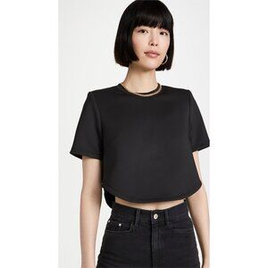 Good American Black Shoulder Scuba Crop Tee Size 0 Cotton Blend