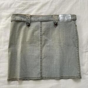 Blugirl Mini denim skirt with belt. Straight silo with cute shank buttons and silver patch at the back. Perfect for cute casual styling. Fits like a size XS, see pics for measurements. From Japan. #miniskirt